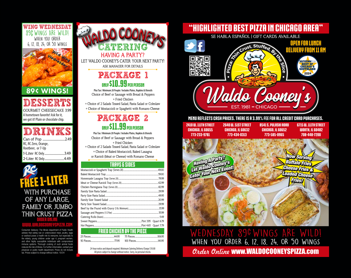 Welcome to Waldo Cooneys Pizza - Chicago, where pizza lovers can indulge in a delightful array of dishes. Located at 2640 W 51st St, this pizzeria is making waves with its standout offerings. First-time diners are raving about the crust; it’s surprisingly thicker than expected for a thin-style pizza yet retains a delightful texture that keeps patrons coming back for more.